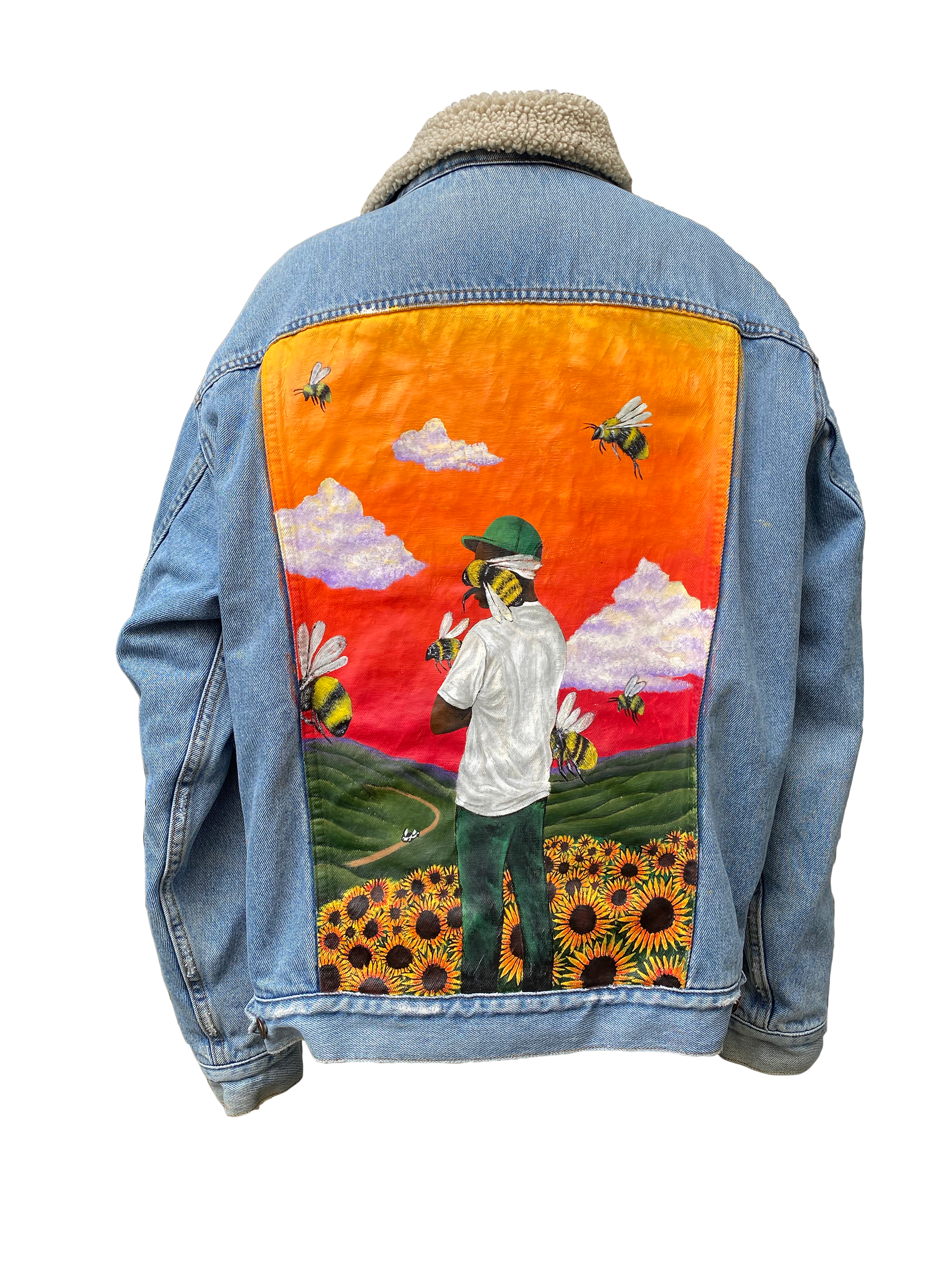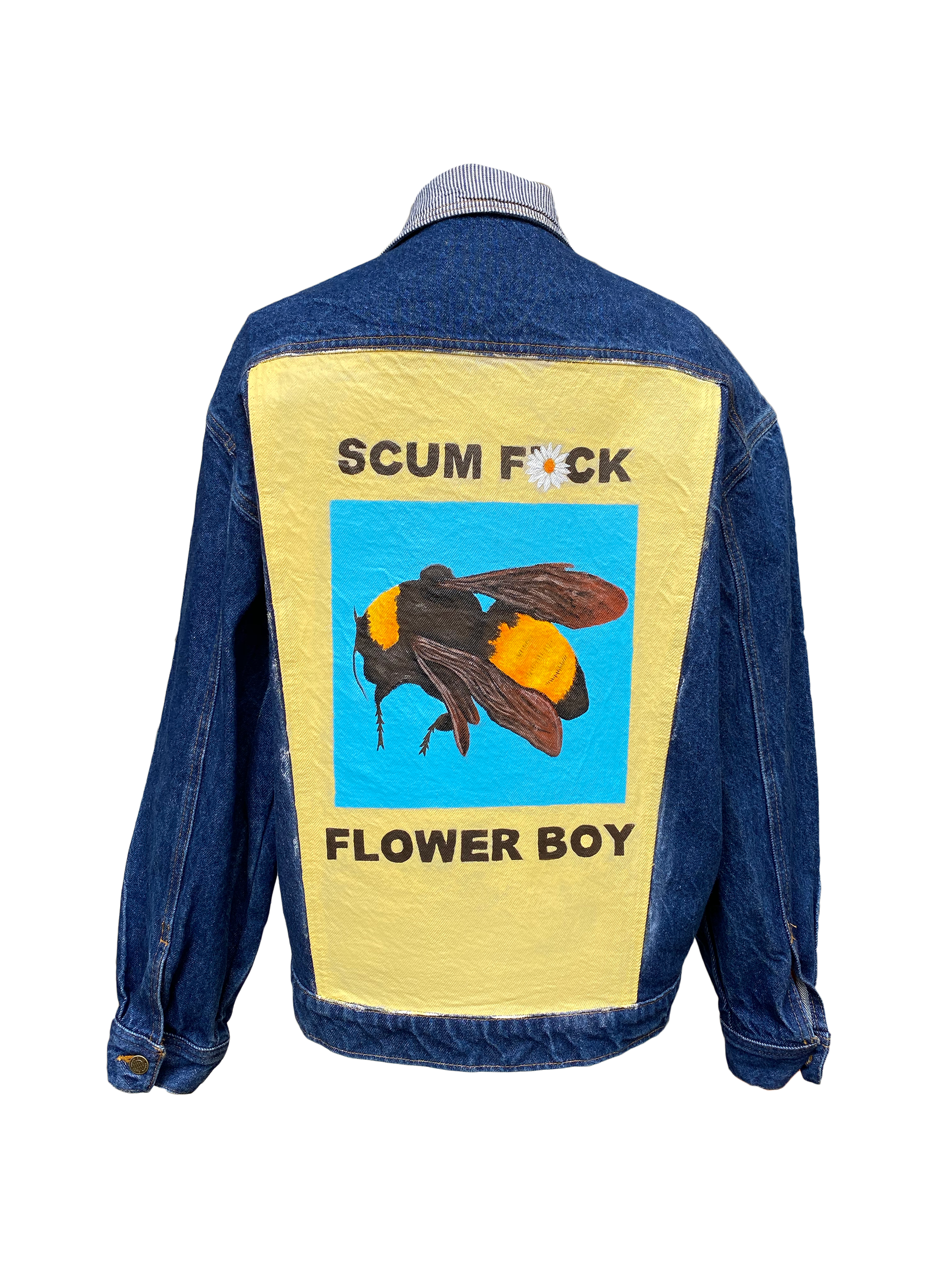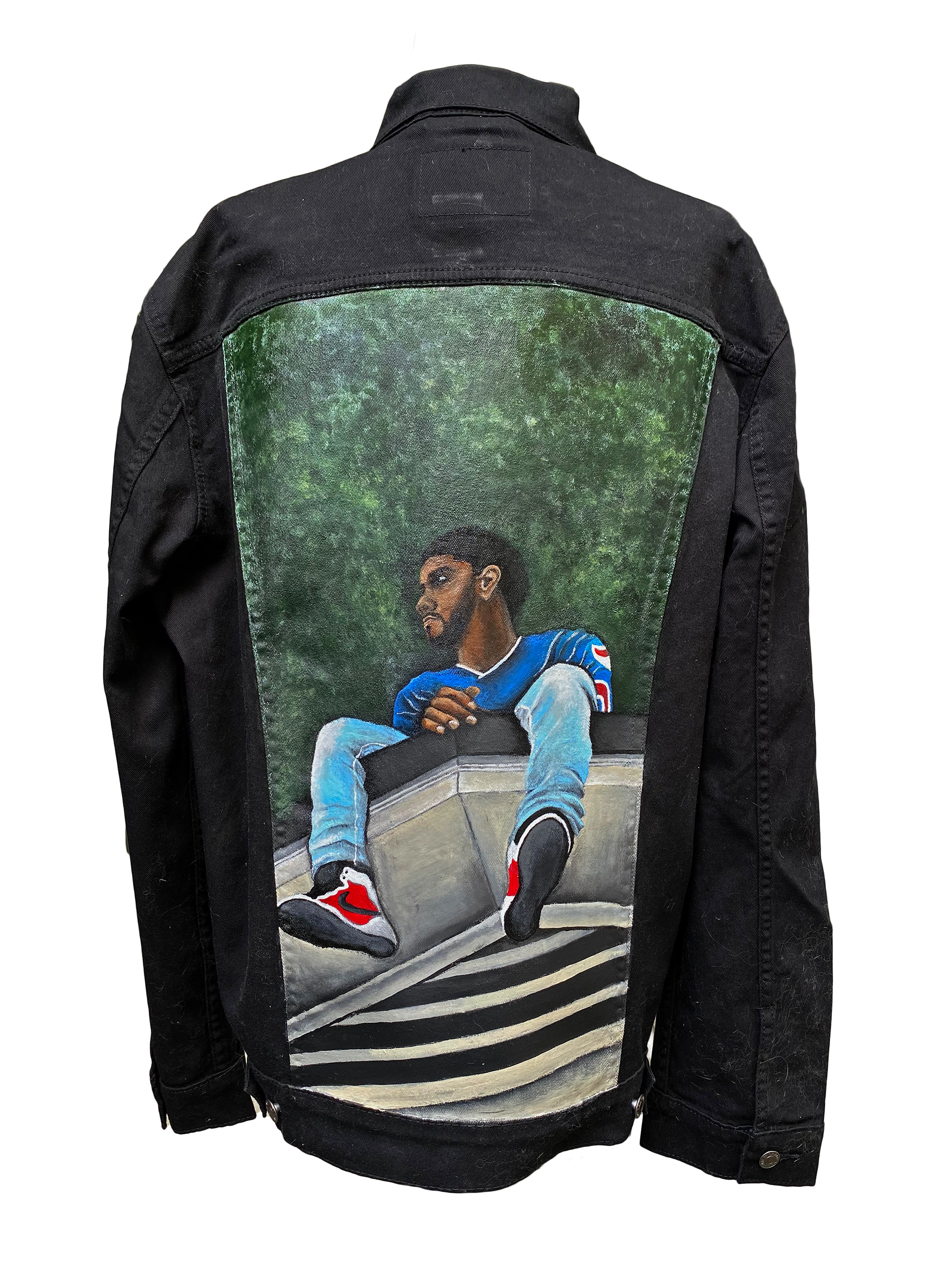 With the back of a denim jacket as my primary canvas, I create and sell custom painted wearable art. It's a way for me to combine three things I deeply love: painting, music, and apparel.